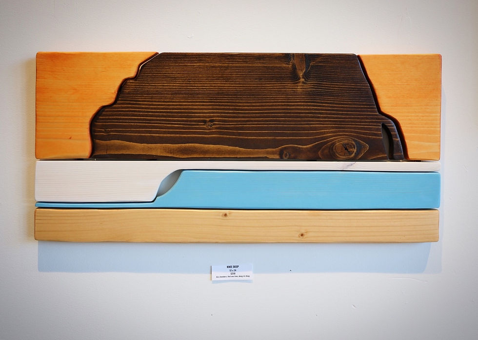 I find different varieties of wood, colored stains, photo transfer mediums and wood working tools to cut and create.